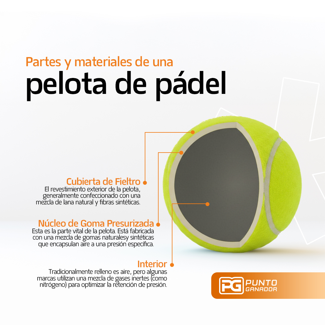 - Núcleo de Goma Presurizada (El Corazón del Rebote): Esta es la parte vital de la pelota. Está fabricada con una mezcla de gomas naturales y sintéticas que encapsulan aire a una presión específica. Es justamente esta presión interna la que genera la fuerza para el rebote, siendo el factor clave que diferencia una pelota de pádel (más presurizada que una de tenis estándar) y su velocidad. A medida que la pelota se usa, esta presión disminuye gradualmente, haciendo que el bote sea menor.